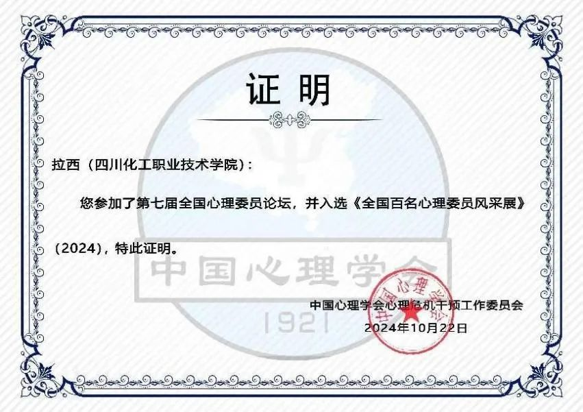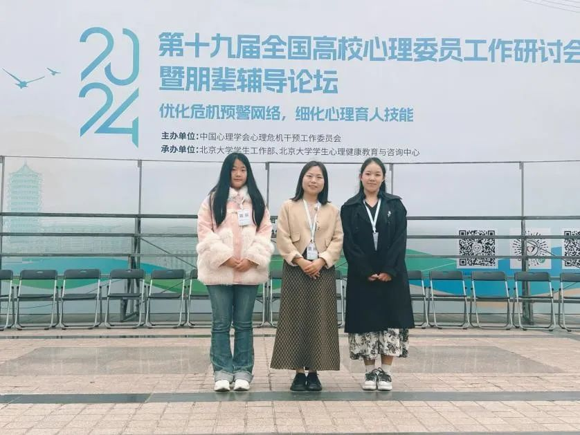 为加强高校心理委员工作队伍建设,探索心理委员工作以及朋辈心理辅导的新方法、新路径,提升心理委员的心理自助与助人的能力,充分发挥心理委员在心理健康服务中的桥梁和纽带作用,促进各高校之间心理健康服务理论与实践工作的交流与合作,中国心理学会心理危机干预工作委员会于2024年10月17-18日在北京大学召开第十九届全国高校心理委员工作研讨会暨朋辈辅导论坛。我校学生心理健康教育中心覃小容老师、数字经济学院软件2331班心理委员曹琴、经济管理学院物流2232班心理委员拉西参加了本次会议,会上,我校2名心理委员代表均入选《全国百名心理委员风采展》。