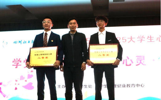 经过激烈角逐,川酒学院的《小丑》夺得大赛一等奖,经济管理学院的《众》、药品与环境工程学院的《沟通与爱》获得二等奖,数字经济学院的《制郁—治愈》、机械工程学院的《“郁”合》、智能制造学院的《太阳的影子》、应用化工学院的《告别自卑》获得三等奖。