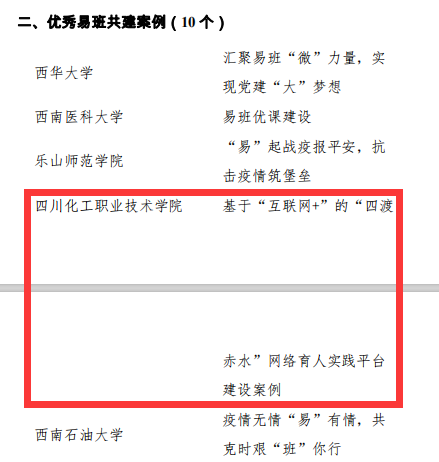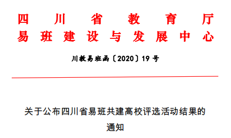 2020年,我校易班工作在学管系统的牵头下,在相关部门的大力支持下,坚持以制度为保障,纵深推进易班建设;坚持以学生为中心,持续满足学生需求;坚持以育人为根本,引领学生成长成才。有效吸引学生、留住学生、引领学生,易班共建指数和活跃指数在全省易班共建高校中名列前茅。在刚刚结束的2020年四川省易班共建高校评选活动中,我校获得优秀易班共建高校、优秀易班共建案例、优秀易班工作站三项大奖(每个高校最多只能申报三项)。