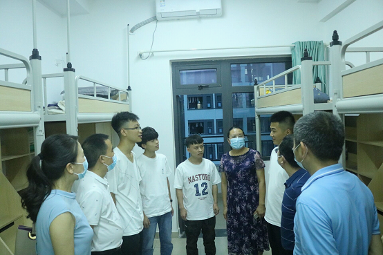 9月12日傍晚,学校党委副书记、纪委书记、工会主席陈淑娟,数字经济学院党总支书记李玲、院长李宏、副院长魏民、罗在文以及各教研室老师前往学生宿舍看望慰问2021级新生。