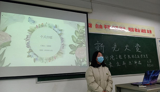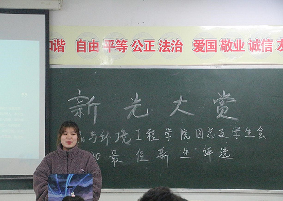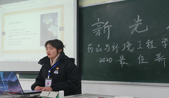 为进一步加强我院团总支学生会成员思想道德建设,推动工作的进一步开展。2020年12月23日16点,药品与环境工程学院团总支学生会在综A503教室开展了“新光大赏”药品与环境工程学院团总支学生会2020年“最佳新人奖”评选。评委是:药品与环境工程学院团总支书记苏双双老师、副书记杨凤同学、执行主席冯志同学、副主席刘源源同学。