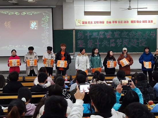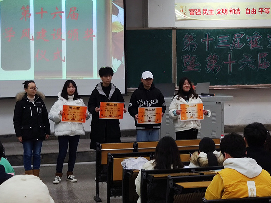 最后应用化工学院王蒙老师为第十六届学风建设获奖的班级颁发奖状。