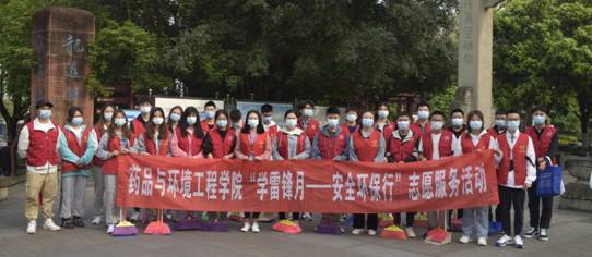 为弘扬伟大的共产主义精神,学习雷锋干一行爱一行的敬业精神,弘扬“奉献、友爱、互助、进步”的志愿服务精神,引导当代大学生积极投身志愿服务活动中,药品与环境工程学院团总支于2021年3月14日上午在泸州市江阳区龙透关公园组织开展了“学雷锋月--安全环保行”志愿服务活动,在院团总支书记苏双双老师带领下,30名志愿者参与此次活动。