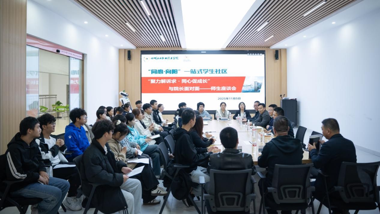 “聚力解诉求・同心促成长”与“院长面对面”座谈会是学校深化 “一站式” 学生社区建设、锚定提质增效核心目标,常态化推动管理服务力量下沉一线的抓手;是聚焦学生急难愁盼,打通“三全育人”最后一公里,将空间优化、自治赋能、诉求响应等育人措施落到实处,切实解决学生学习生活中的实际问题的师生连心桥。活动既深化了 “以生为本” 的育人理念,又凝聚起师生共建共治的强大合力,显著提升了学生的归属感与认同感。在“一站式”学生社区建设中,学校将持续推动服务资源向社区集聚、管理力量向一线扎根,以精准化、精细化举措夯实社区育人功能,为学生全面发展提供保障,为社区提质增效注入持久动力。